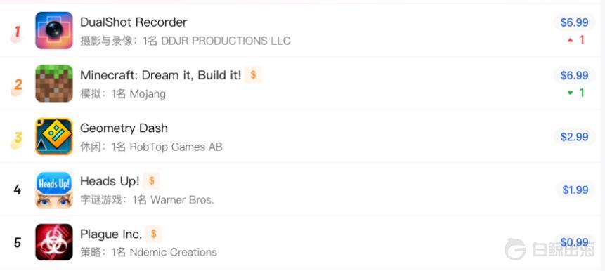 没错,「DualShot Recorder」被设计为一次性买断的付费应用,而且并不是 1 刀 2 刀这种特别便宜的价格,用户需要支付 6.99 美元后才可以下载。此时,登顶付费榜比免费榜更有指向性的是,用户真实的付费意愿。我们按单日下载量 1w 保守预估,产品的分成前单日收入大概是 7 万美元,上线 3 天就是 21 万美元,超 140 万人民币。